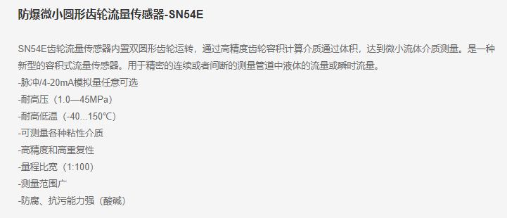 PAKU 防爆微小圆形齿轮流量传感器-SN54E系列