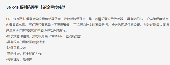 PAKU 防爆型叶轮流量传感器SN-51F系列